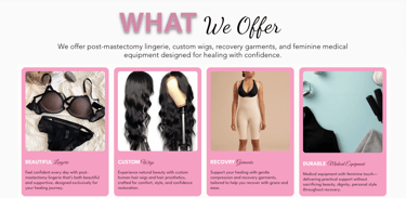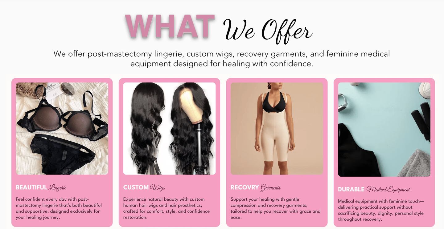 Empowering women with post-surgical garments, wigs, and beauty products to restore confidence, beauty, and identity after medical journeys.